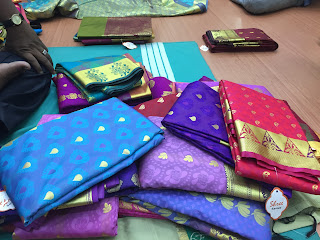 Some of the many sarees on display. |
