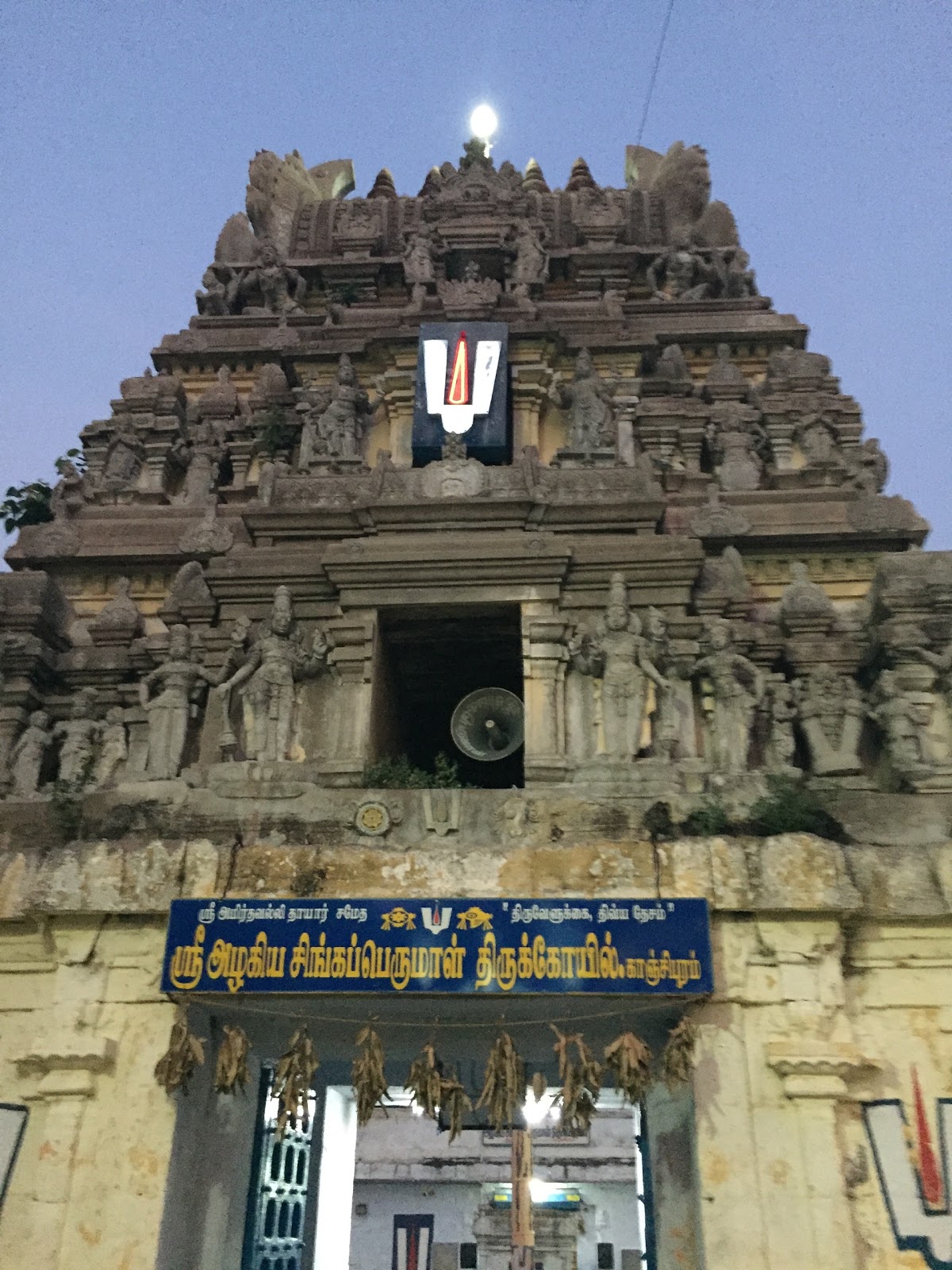 The last stop of the day was at Thiruthanka. “Deepa” means light and in this temple, Vishnu appears as light overcoming darkness. Since it was late, the gates were closed, but I did manage to get my darshan from outside. He is also known as “Vilakku Oli Perumal”, again translating to one who gave light.